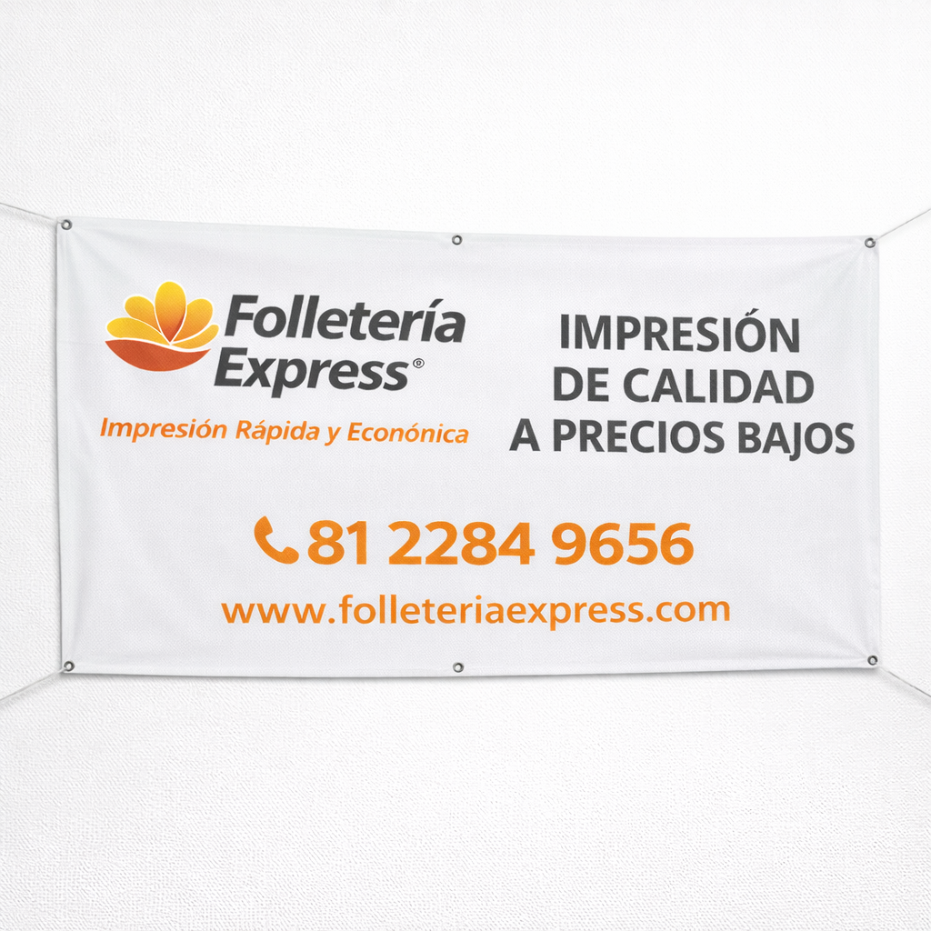 Lona publicitaria. Impresión gran formato para publicidad y señalización. Opciones de resolución según distancia de vista, acabados como laminado, corte, ojillos y refuerzos. Ideal para anuncios, eventos, señalética y decoración comercial.