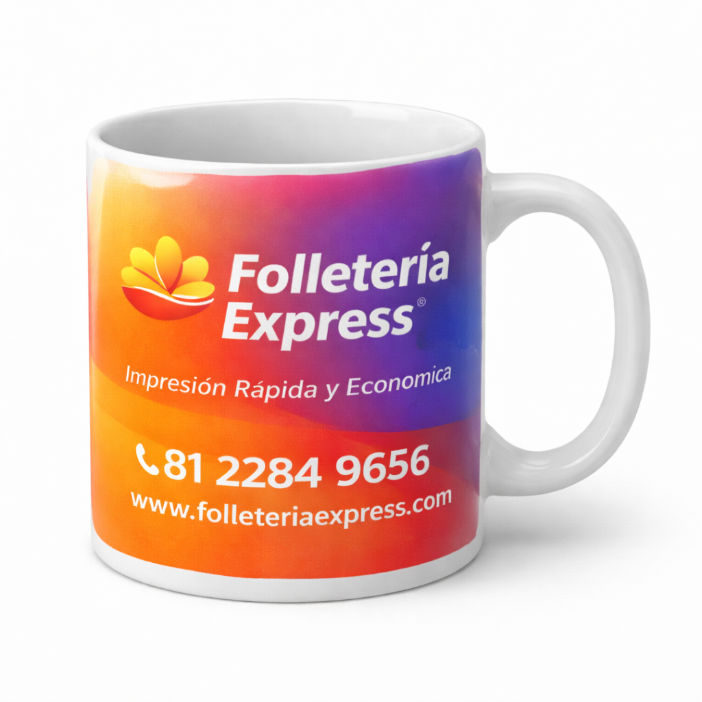 Taza sublimada. Artículo promocional para branding, regalos y campañas. Se cotiza por modelo, técnica (sublimación, DTF, UV, grabado láser) y cantidad. Opción de diseño y empaques.